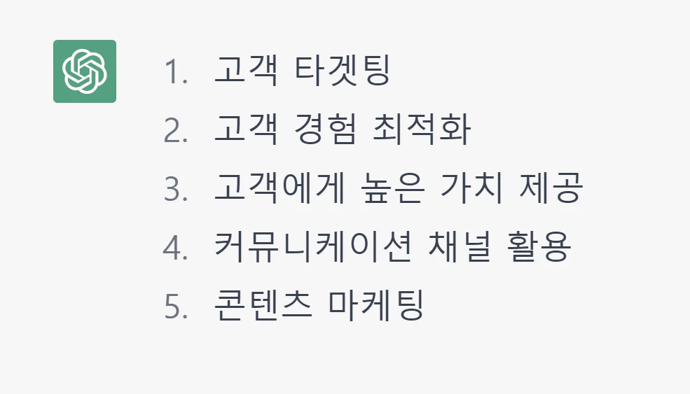 우선 B2B SAAS 마케팅의 5가지 전략을 타이틀만 달라고 입력했습니다. 그리고 아래와 같은 결과 값을 받았습니다.