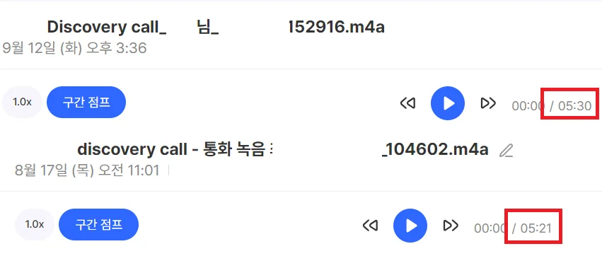 Gong, Chorus 등 해외 디스커버리 콜 사례의 경우 Zoom/Google Meet 등 온라인 미팅을 통해 진행하는 경우가 대부분입니다. 그렇기에 디스커버리 콜이 전화로 이뤄지는 한국의 현실과 맞지 않을 수 있습니다.