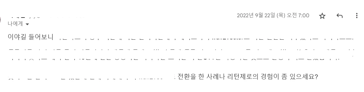 저의 경우 기존에 계약을 이미 한 적이 있던 고객사 대표님의 문의가 있었고 그 당시 이메일을 다시 보면 당시에는 이 정도 계약 규모가 되리라고는 생각치 못했습니다.